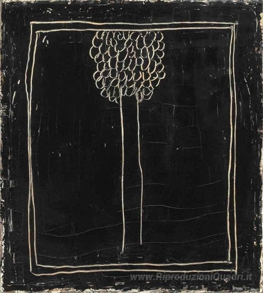 Ti offriamo una riproduzione artigianale su tela dell'opera famosa 'Nero Cypress' di Joan Hernandez Pijuan, dal Museo delle Riproduzioni.