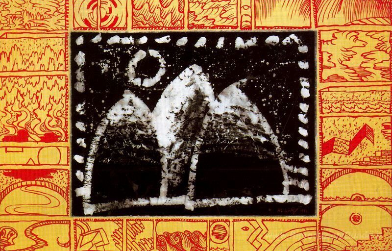Ti offriamo una riproduzione artigianale su tela dell'opera famosa 'Oui-nou-et-oui' di Pierre Alechinsky, dal Museo delle Riproduzioni.