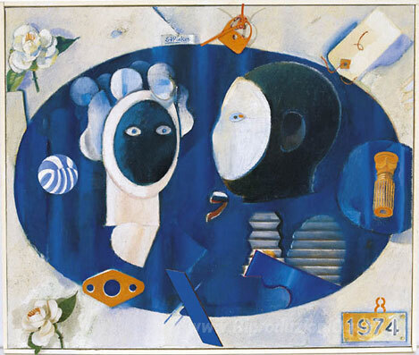 Ti offriamo una riproduzione artigianale su tela dell'opera famosa 'Persone e cose' di Stanley Pinker, dal Museo delle Riproduzioni.