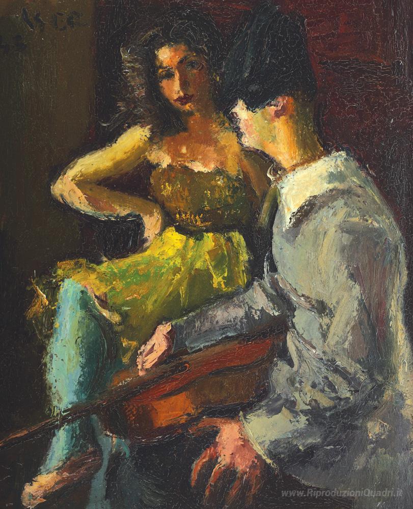 Ti offriamo una riproduzione artigianale su tela dell'opera famosa 'Pierrot e Colombina' di Iosif Iser, dal Museo delle Riproduzioni.