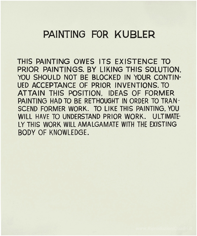 Ti offriamo una riproduzione artigianale su tela dell'opera famosa 'Pittura per Kubler' di John Baldessari, dal Museo delle Riproduzioni.