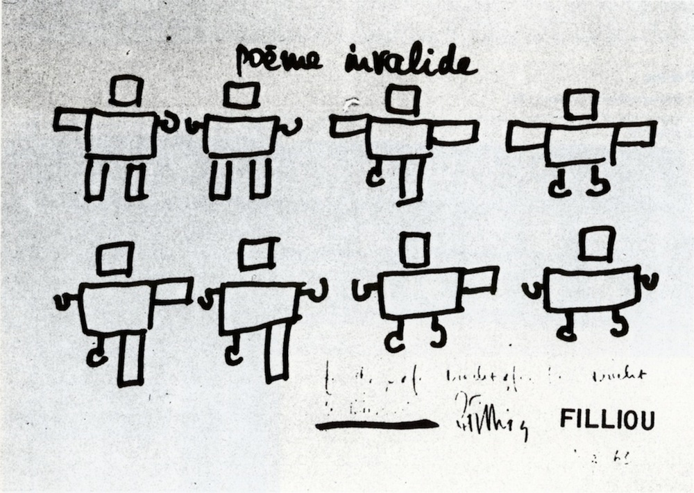 Ti offriamo una riproduzione artigianale su tela dell'opera famosa 'Poème Invalide' di Robert Filliou, dal Museo delle Riproduzioni.