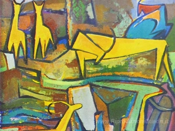 Ti offriamo una riproduzione artigianale su tela dell'opera famosa 'Pomeriggio Giallo' di Walter Battiss, dal Museo delle Riproduzioni.