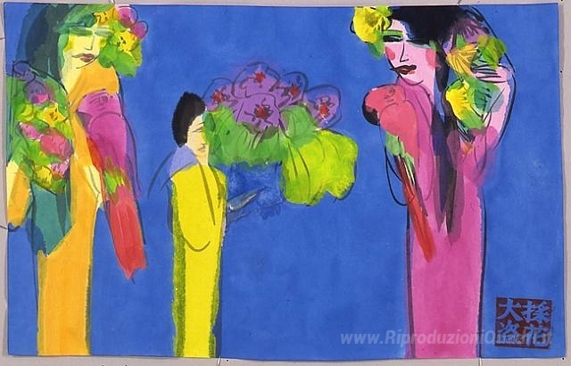 Ti offriamo una riproduzione artigianale su tela dell'opera famosa 'Portare nei fiori' di Walasse Ting, dal Museo delle Riproduzioni.
