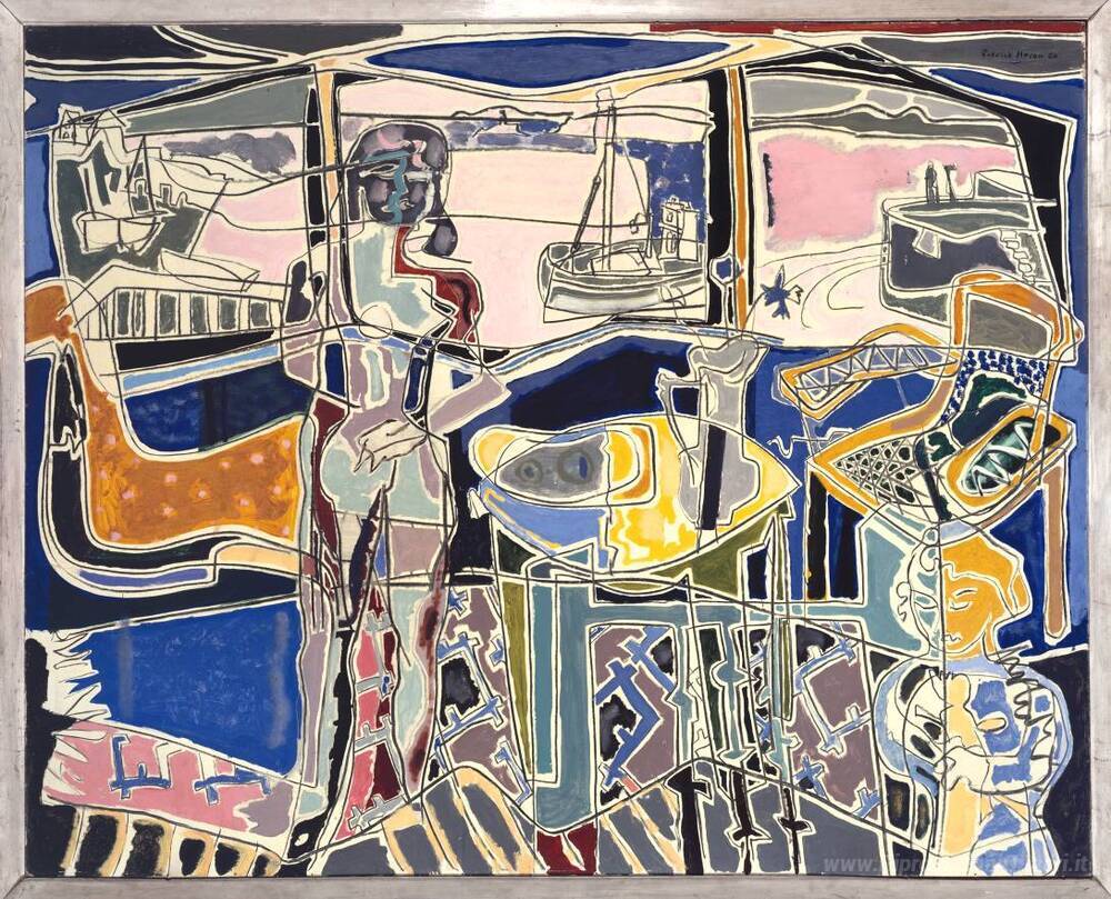 Scopri il fascino senza tempo dei dipinti a olio italiani attraverso opere straordinarie che raccontano storie uniche. Tra queste, il capolavoro Porto Finestra con due figure, St. Ives: luglio 1950 dell'artista inglese Patrick Heron si distingue per la sua vibrante rappresentazione di paesaggi costieri. Heron, noto per il suo approccio innovativo nell’uso del colore e della luce, riesce a catturare l'essenza del momento, creando un'atmosfera di serenità e contemplazione.