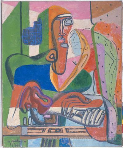 Ti offriamo una riproduzione artigianale su tela dell'opera famosa 'Portrait de femme à la Cathédrale de Sens' di Le Corbusier, dal Museo delle Riproduzioni.