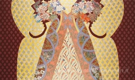 Ti offriamo una riproduzione artigianale su tela dell'opera famosa 'Presenza Reale' di Miriam Schapiro, dal Museo delle Riproduzioni.