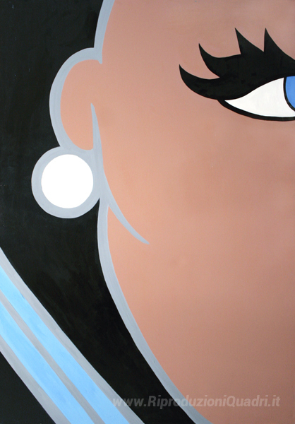 Ti offriamo una riproduzione artigianale su tela dell'opera famosa 'Ragazza con la perla' di Marjorie Strider, dal Museo delle Riproduzioni.