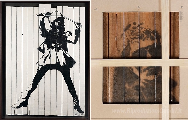 Ti offriamo una riproduzione artigianale su tela dell'opera famosa 'Resistere' di Blek le Rat, dal Museo delle Riproduzioni.