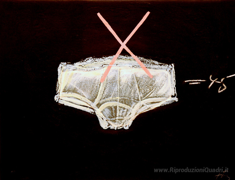 Ti offriamo una riproduzione artigianale su tela dell'opera famosa 'Roba interno' di Antoni Tapies, dal Museo delle Riproduzioni.