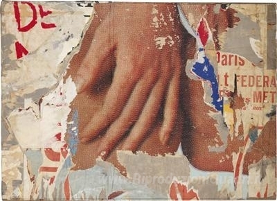 Ti offriamo una riproduzione artigianale su tela dell'opera famosa 'Rue du Temple - La Main' di Jacques Villeglé, dal Museo delle Riproduzioni.