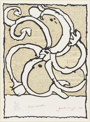 Ti offriamo una riproduzione artigianale su tela dell'opera famosa 'Ruota posteriore' di Pierre Alechinsky, dal Museo delle Riproduzioni.