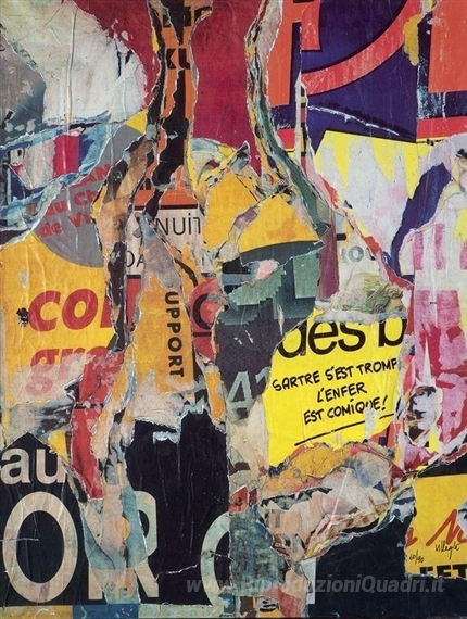 Ti offriamo una riproduzione artigianale su tela dell'opera famosa 'Sartre era sbagliato' di Jacques Villeglé, dal Museo delle Riproduzioni.