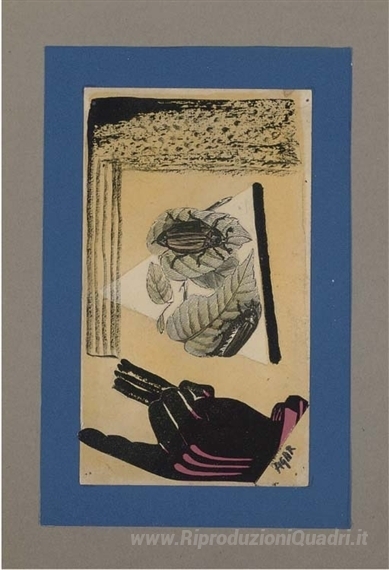 Ti offriamo una riproduzione artigianale su tela dell'opera famosa 'Scarafaggi e mano' di Eileen Agar, dal Museo delle Riproduzioni.