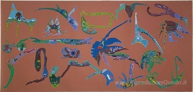 Lo stile audace e innovativo di Fahlstrom, caratterizzato da colori vivaci e forme astratte, riesce ad arricchire qualsiasi ambiente, rendendo ogni spazio unico e affascinante. Il dipinto non solo cattura l'attenzione, ma crea anche un'atmosfera di profondità e coinvolgimento, trasformando la vostra casa in una galleria d'arte. Scegliere Sedici elementi da Cile 1 significa portare a casa non solo un'opera d'arte, ma anche un pezzo della storia e della cultura visiva italiana.