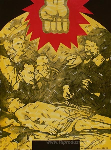 Ti offriamo una riproduzione artigianale su tela dell'opera famosa 'Senza titolo' di Wang Guangyi, dal Museo delle Riproduzioni.