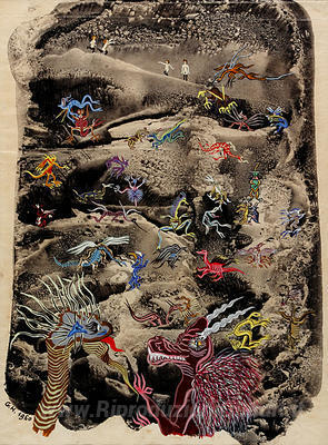 Ti offriamo una riproduzione artigianale su tela dell'opera famosa 'Senza titolo' di Georges Hugnet, dal Museo delle Riproduzioni.