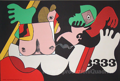 Ti offriamo una riproduzione artigianale su tela dell'opera famosa 'Senza titolo' di Jose de Guimaraes, dal Museo delle Riproduzioni.
