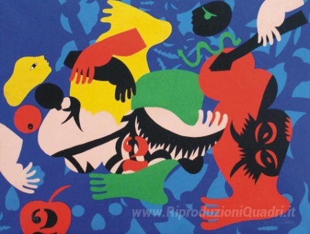 Ti offriamo una riproduzione artigianale su tela dell'opera famosa 'Senza titolo' di Jose de Guimaraes, dal Museo delle Riproduzioni.