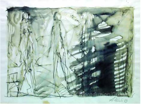 Ti offriamo una riproduzione artigianale su tela dell'opera famosa 'Senza titolo' di Antonio Palolo, dal Museo delle Riproduzioni.