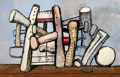 Ti offriamo una riproduzione artigianale su tela dell'opera famosa 'Senza titolo' di Philip Guston, dal Museo delle Riproduzioni.