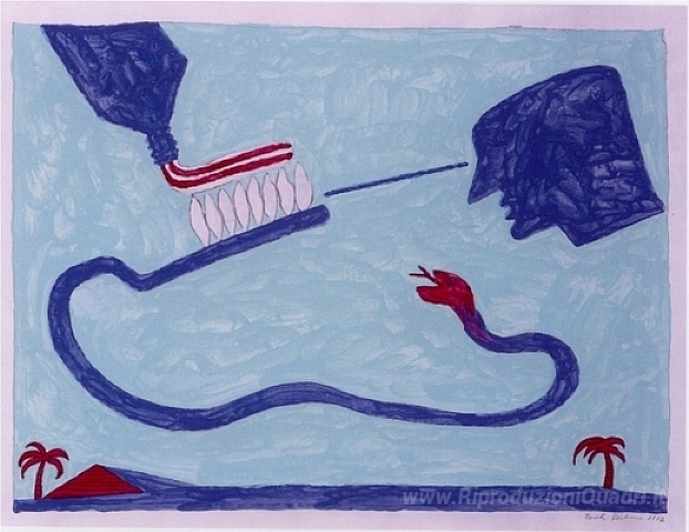 Ti offriamo una riproduzione artigianale su tela dell'opera famosa 'Serpent Stripe' di Derek Boshier, dal Museo delle Riproduzioni.