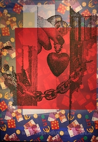 Ti offriamo una riproduzione artigianale su tela dell'opera famosa 'S.H. und die Liebe zum Stoff' di Sigmar Polke, dal Museo delle Riproduzioni.