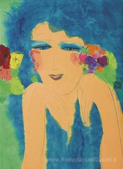 Ti offriamo una riproduzione artigianale su tela dell'opera famosa 'Signora sorridente' di Walasse Ting, dal Museo delle Riproduzioni.