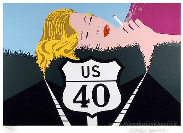 Ti offriamo una riproduzione artigianale su tela dell'opera famosa 'Smoke sogno' di Allan D'Arcangelo, dal Museo delle Riproduzioni.