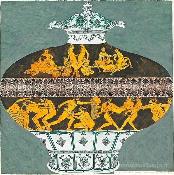 Ti offriamo una riproduzione artigianale su tela dell'opera famosa 'Smut Dynasty Vase (Pornament è Crime Series)' di Joyce Kozloff, dal Museo delle Riproduzioni.