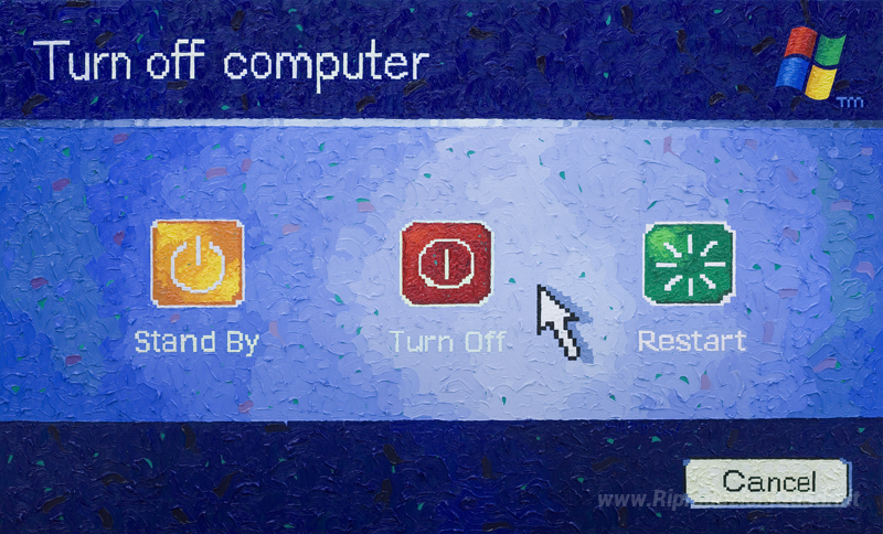 Ti offriamo una riproduzione artigianale su tela dell'opera famosa 'Spegni' di Florin Ciulache, dal Museo delle Riproduzioni.