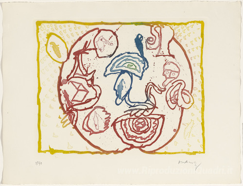 Ti offriamo una riproduzione artigianale su tela dell'opera famosa 'Stars catastrofico (Astres et desastres)' di Pierre Alechinsky, dal Museo delle Riproduzioni.