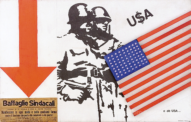 Ti offriamo una riproduzione artigianale su tela dell'opera famosa 'Stati Uniti d'America e abUSA' di Claudio Tozzi, dal Museo delle Riproduzioni.
