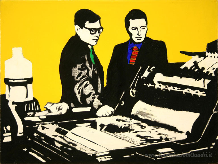 Con la sua tecnica minuziosa, Rosalyn Drexler riesce a catturare l'essenza di un’epoca, facendo dialogare il colore e la forma in un equilibrio armonioso. Questo dipinto non è solo un'aggiunta estetica per gli spazi moderni; esso trasmette emozioni e stimola conversazioni, arricchendo qualsiasi ambiente con la sua forte presenza visiva. Scegliendo Studio per uomini e macchine, non porterete solo un'opera d'arte nella vostra casa, ma un pezzo di storia contemporanea italiana.