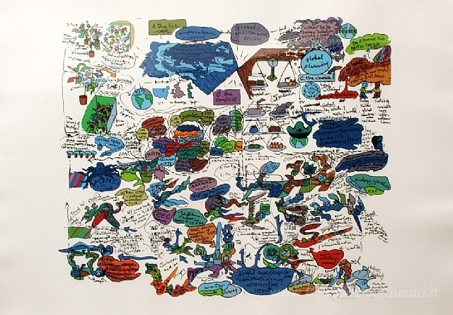 Ti offriamo una riproduzione artigianale su tela dell'opera famosa 'Studio per World Model (Giardino)' di Oyvind Fahlstrom, dal Museo delle Riproduzioni.