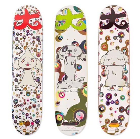 Ti offriamo una riproduzione artigianale su tela dell'opera famosa 'Supreme Skate Decks' di Takashi Murakami, dal Museo delle Riproduzioni.