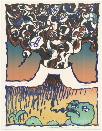 Ti offriamo una riproduzione artigianale su tela dell'opera famosa 'Tavola III dai Vulcanologies portafoglio' di Pierre Alechinsky, dal Museo delle Riproduzioni.