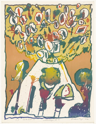 Ti offriamo una riproduzione artigianale su tela dell'opera famosa 'Tavola VI dai Vulcanologies portafoglio' di Pierre Alechinsky, dal Museo delle Riproduzioni.