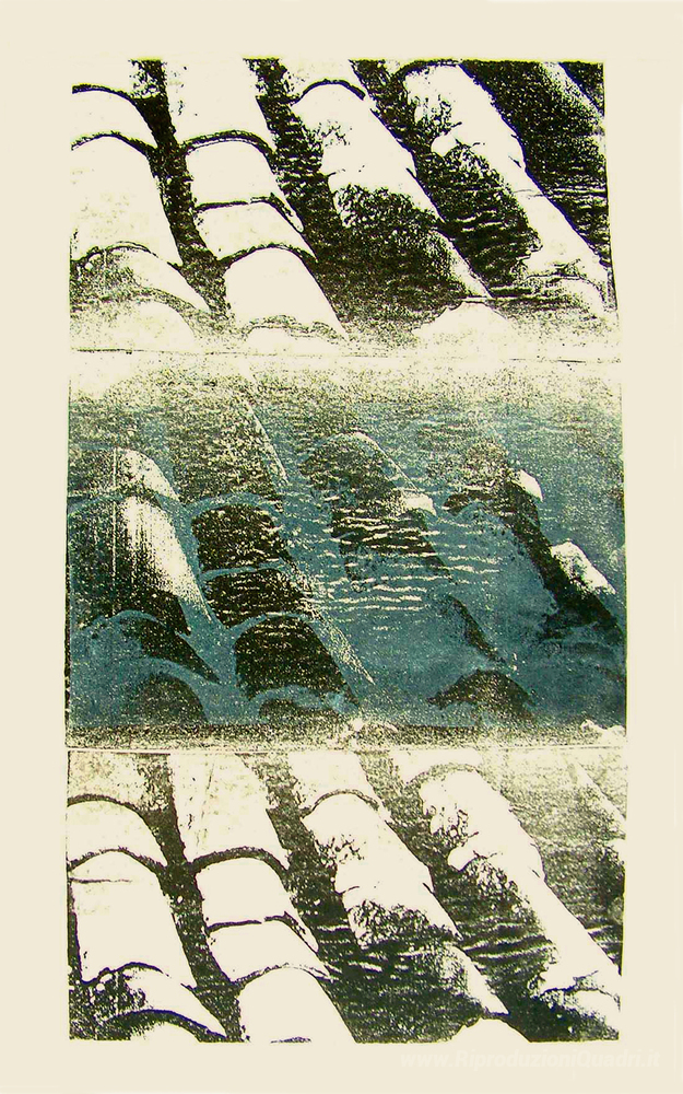 Ti offriamo una riproduzione artigianale su tela dell'opera famosa 'Tegole No 7' di Hilly van Eerten, dal Museo delle Riproduzioni.