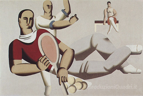 Ti offriamo una riproduzione artigianale su tela dell'opera famosa 'Tennisti' di Willi Baumeister, dal Museo delle Riproduzioni.