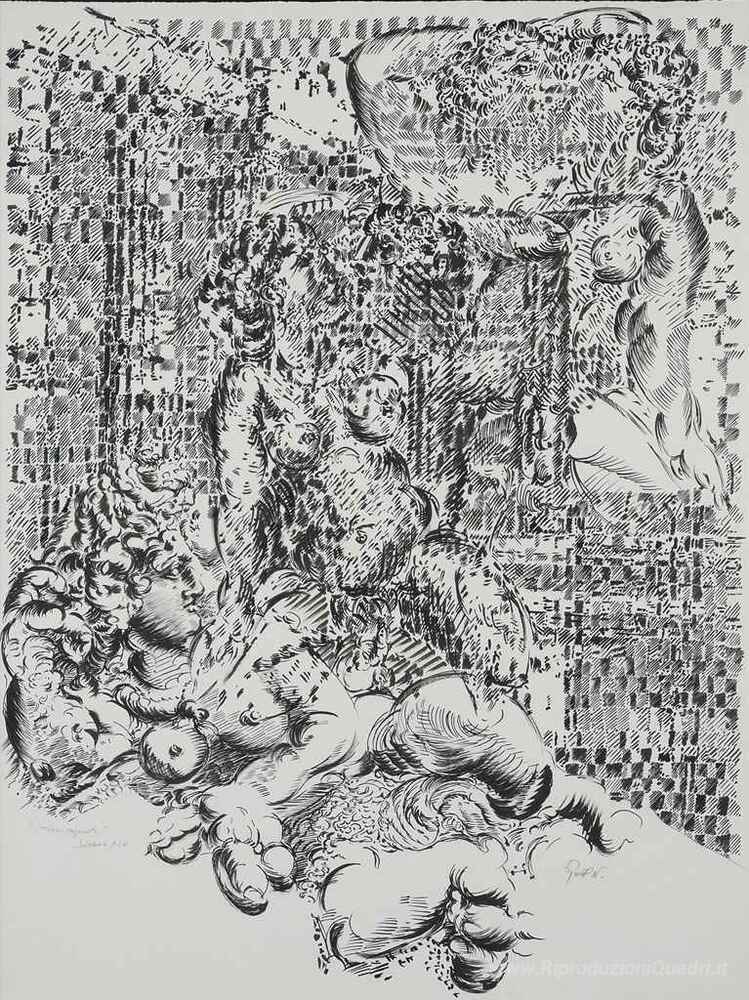 Ti offriamo una riproduzione artigianale su tela dell'opera famosa 'Tiru-Frammenti' di Francois Rouan, dal Museo delle Riproduzioni.