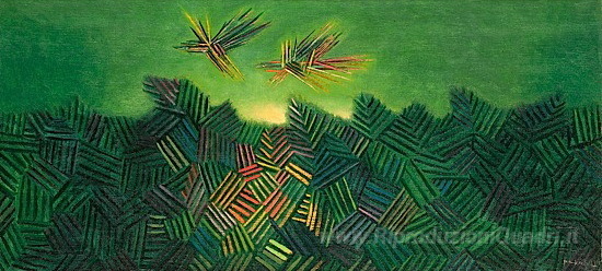 Ti offriamo una riproduzione artigianale su tela dell'opera famosa 'Two Birds' di Georges Papazoff, dal Museo delle Riproduzioni.