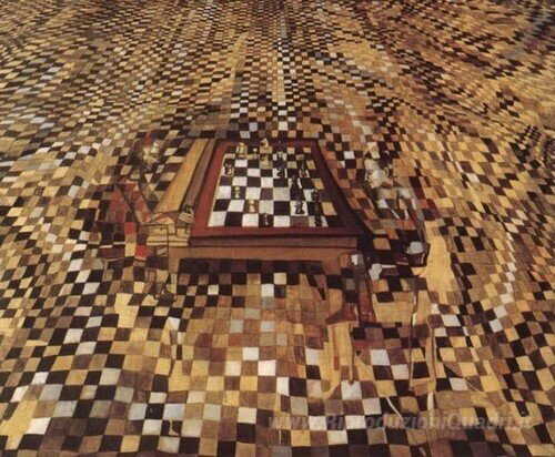 Ti offriamo una riproduzione artigianale su tela dell'opera famosa 'Un Partida de Xadrez' di Maria Helena Vieira da Silva, dal Museo delle Riproduzioni.