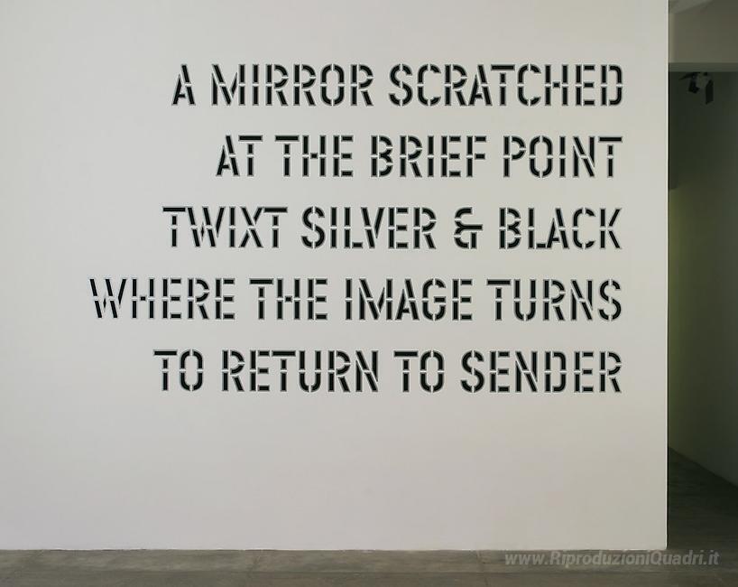 Ti offriamo una riproduzione artigianale su tela dell'opera famosa 'Uno specchio graffiato ...' di Lawrence Weiner, dal Museo delle Riproduzioni.