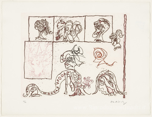 Ti offriamo una riproduzione artigianale su tela dell'opera famosa 'Untitled dal test del (titolo Le prova du) Titolo' di Pierre Alechinsky, dal Museo delle Riproduzioni.