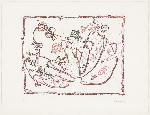 Ti offriamo una riproduzione artigianale su tela dell'opera famosa 'Untitled dal test del (titolo Le prova du) Titolo' di Pierre Alechinsky, dal Museo delle Riproduzioni.