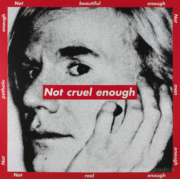 Ti offriamo una riproduzione artigianale su tela dell'opera famosa 'Untitled (Non abbastanza crudele)' di Barbara Kruger, dal Museo delle Riproduzioni.