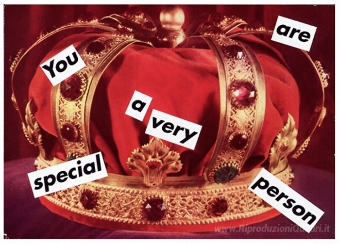 Ti offriamo una riproduzione artigianale su tela dell'opera famosa 'Untitled (Sei una persona molto speciale)' di Barbara Kruger, dal Museo delle Riproduzioni.