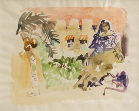 Ti offriamo una riproduzione artigianale su tela dell'opera famosa 'Vecchio Lamu, Bajun Isole' di Walter Battiss, dal Museo delle Riproduzioni.