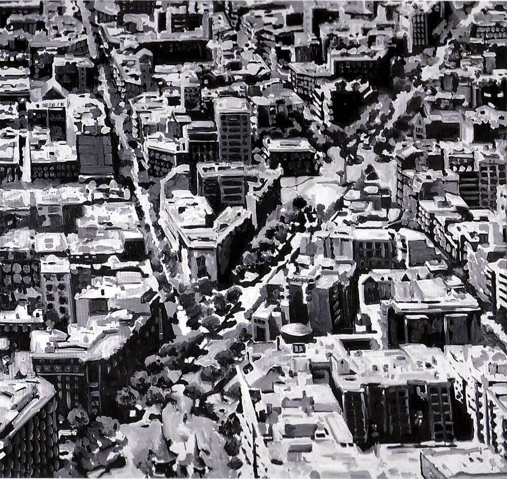 Ti offriamo una riproduzione artigianale su tela dell'opera famosa 'Veduta di città Madrid' di Gerhard Richter, dal Museo delle Riproduzioni.